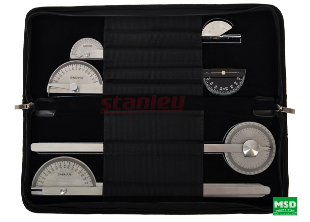 Profesjonalny zestaw goniometrów metalowych umieszczony jest w wygodnej walizce. Zestaw zawiera: