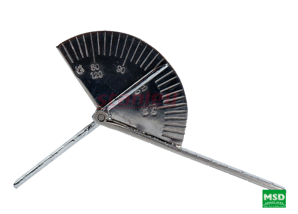 Goniometr ze stali nierdzewnej mierzy zakres ruchu stawów palców. Głowica przyrządu posiada dwie przeciwstawne skale oznaczone w 5° przyrostach. Na ramieniu przyrządu znajduje się liniowa skala w centymetrach.