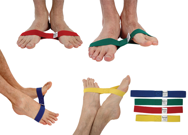 System rehabilitacyjny Ankleciser składa się z 4 naprężonych pasów ze wzmocnionego materiału elastycznego, które są pocięte i przyszyte tak, aby tworzyły dwie połączone ze sobą pętle, które z łatwością można umieścić na bucie lub bosej stopie.