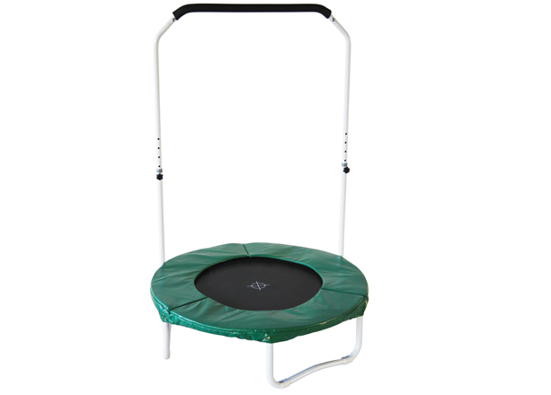 Trampolina rehabilitacyjna posiada mocną i stabilną podstawę. Wysokiej jakości materiał daje poczucie komfortu przez co skakanie na trampolinie jest łagodne dla stawów i więzadeł. Dzięki centralnemu punktowi zaznaczonemu na macie obie nogi ćwiczą tak samo.